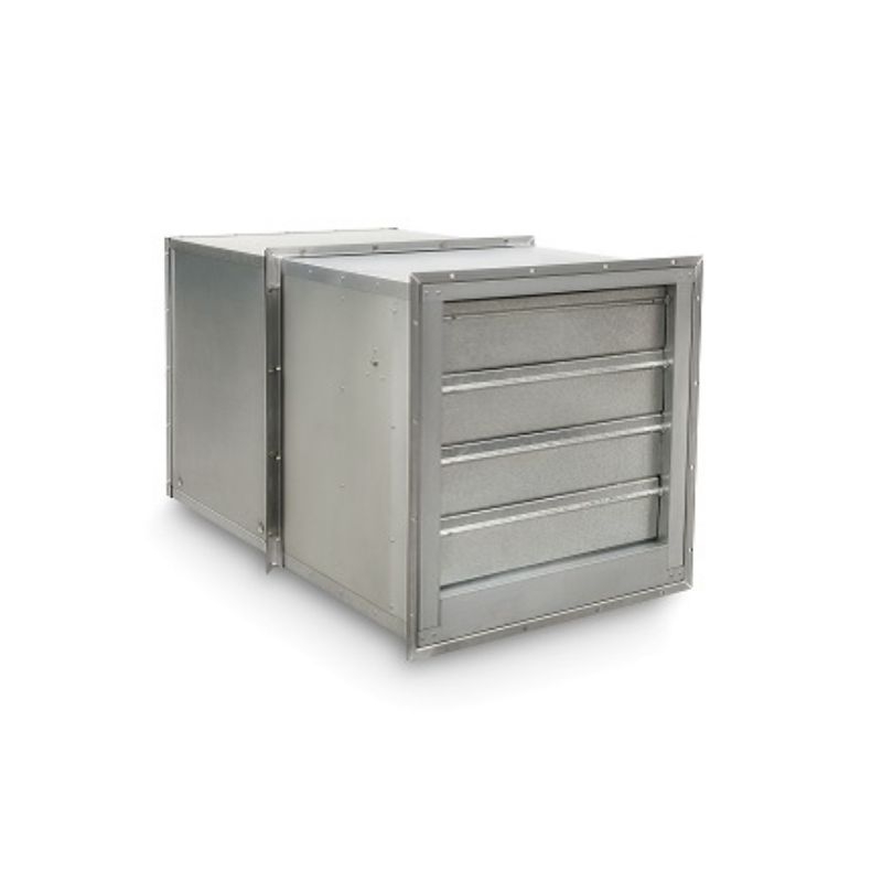 La apertura se logra a trav茅s de un mecanismo, lo que permite una regulaci贸n de la cantidad de aire deseado a la presi贸n est谩tica requerida, con p茅rdidas de fricci贸n m铆nima.