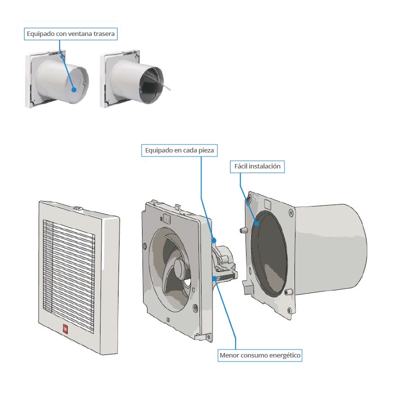 El Extractor de Aire Súper Silencioso permiten ventilar la estancia eliminando también el moho y los malos olores. Además el Extractor de Aire Súper Silencioso ayuda a mantener las paredes y el suelo en buen estado a pesar de la presencia de vaho y humedad en el cuarto de baño, porque al evacuar el aire hacia el exterior se evitan las condensaciones.