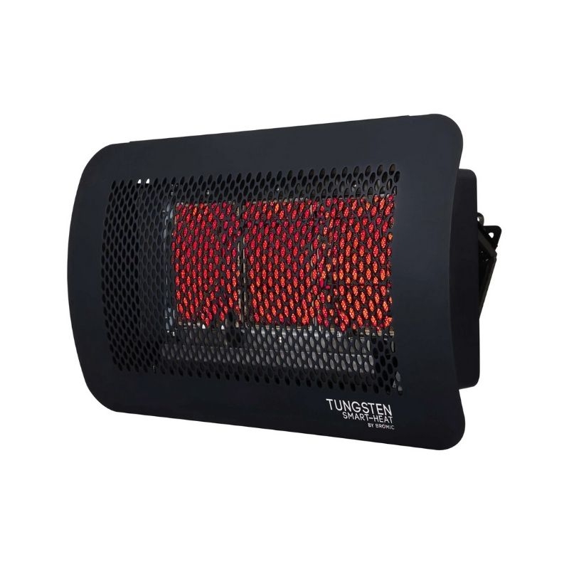 El calentador de patio de gas natural Tungsten 300 Smart-Heat puede montarse en la pared o en el techo y conectarse a los controles del sistema inteligente para adaptarse a las preferencias de calefacción personalizadas. El soporte universal le permite actualizar fácilmente los calentadores de las series 300 a 500 sin ningún cableado adicional.