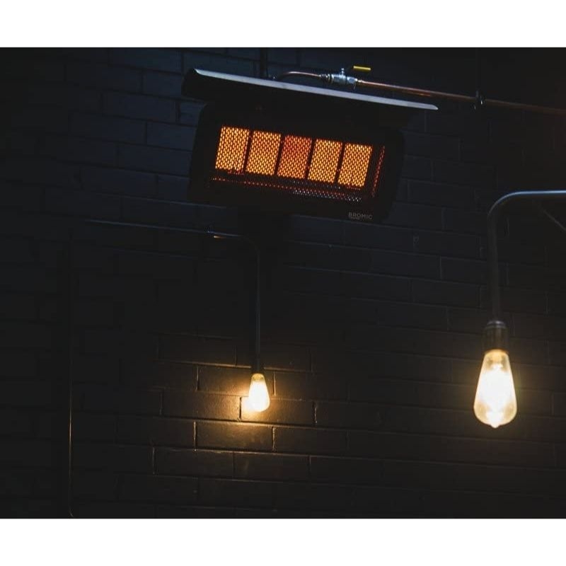 El calentador de patio de gas natural Tungsten 500 Smart-Heat puede montarse en la pared o en el techo y conectarse a los controles del sistema inteligente para adaptarse a las preferencias de calefacción personalizadas. El soporte universal le permite actualizar fácilmente los calentadores de las series 300 a 500 sin ningún cableado adicional.